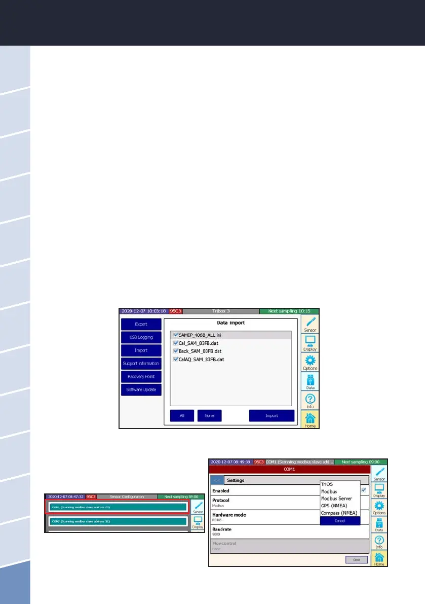 To do this, copy the four les onto a USB stick and insert it into the TriBox. Select the “Data” menu in the