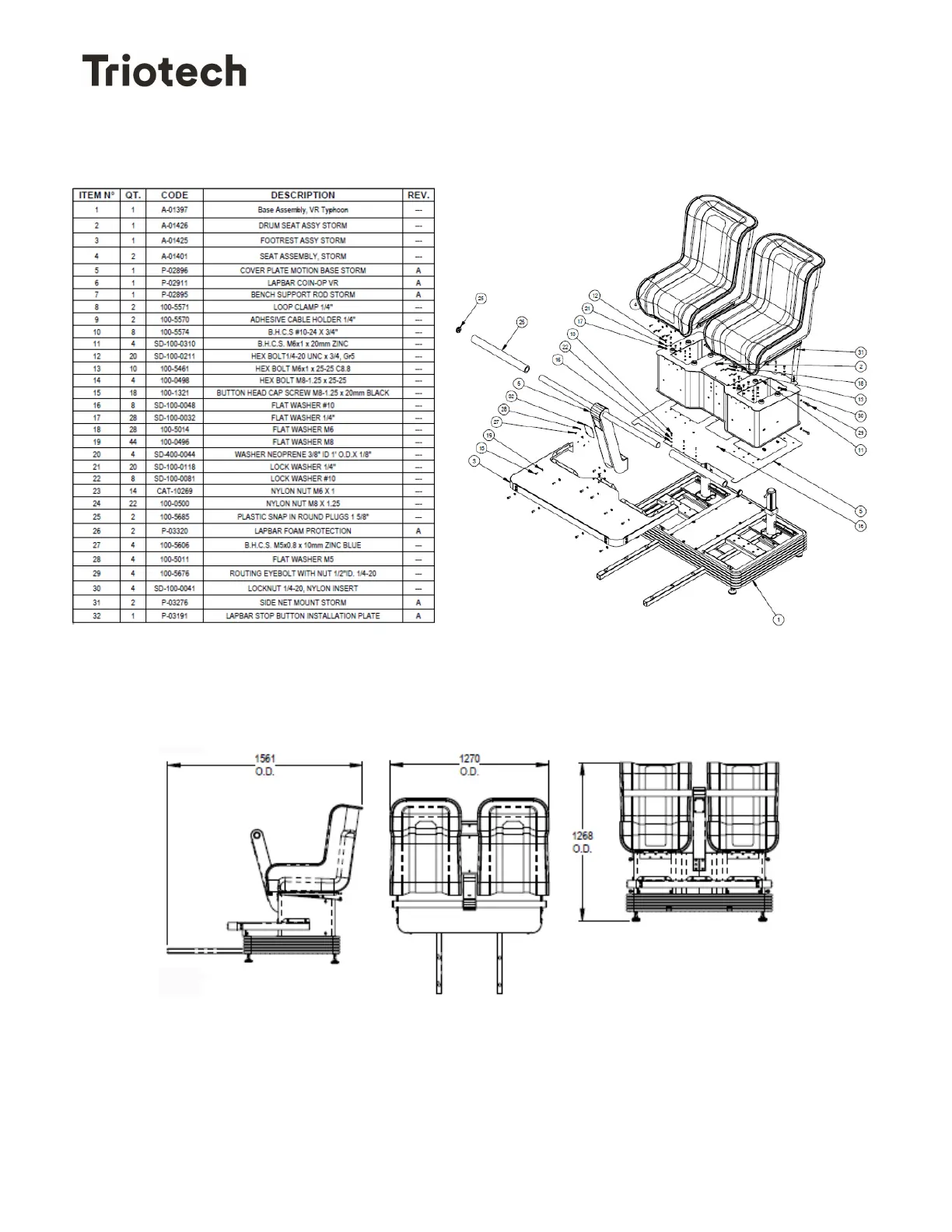 Triotech Storm VR - Seat Assembly