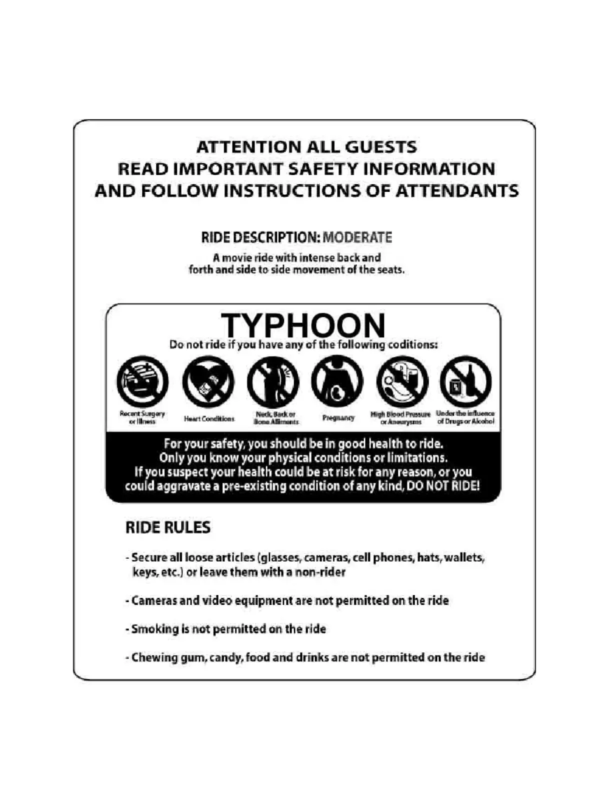 Triotech TYPHOON - Safety and Ride Rules; Ride Description and Health Precautions; Guest Ride Guidelines and Rules