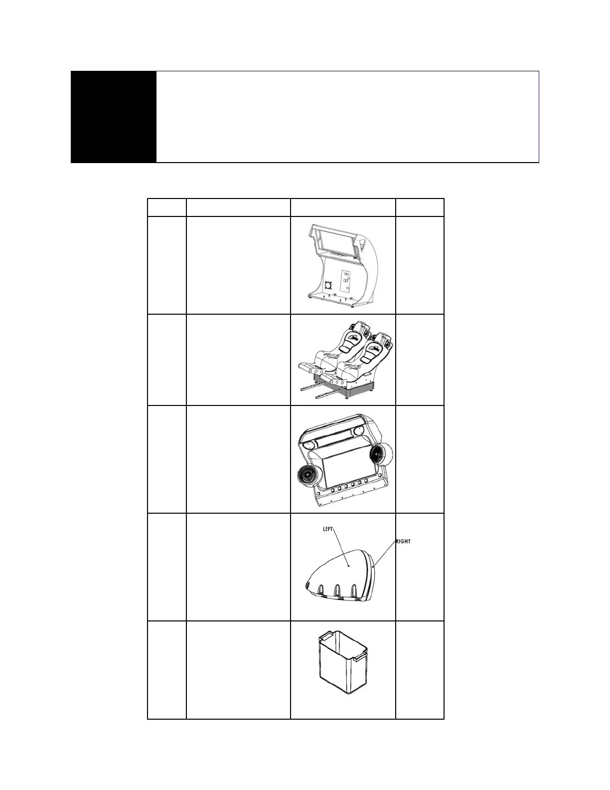 LIST OF SUPPLIED ASSEMBLY PARTS