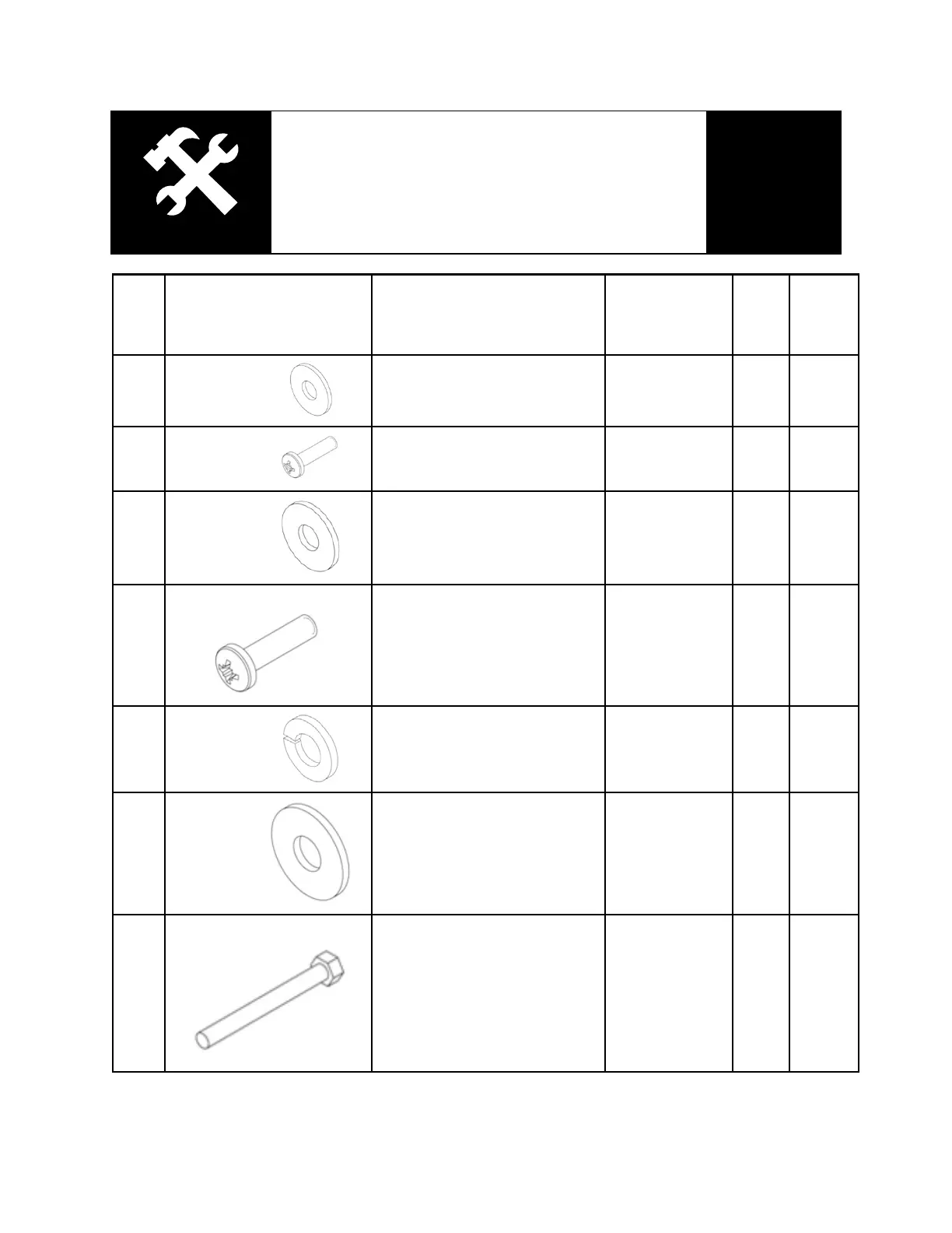 No. IMAGE DESCRIPTION SIZE QTY. SPARE