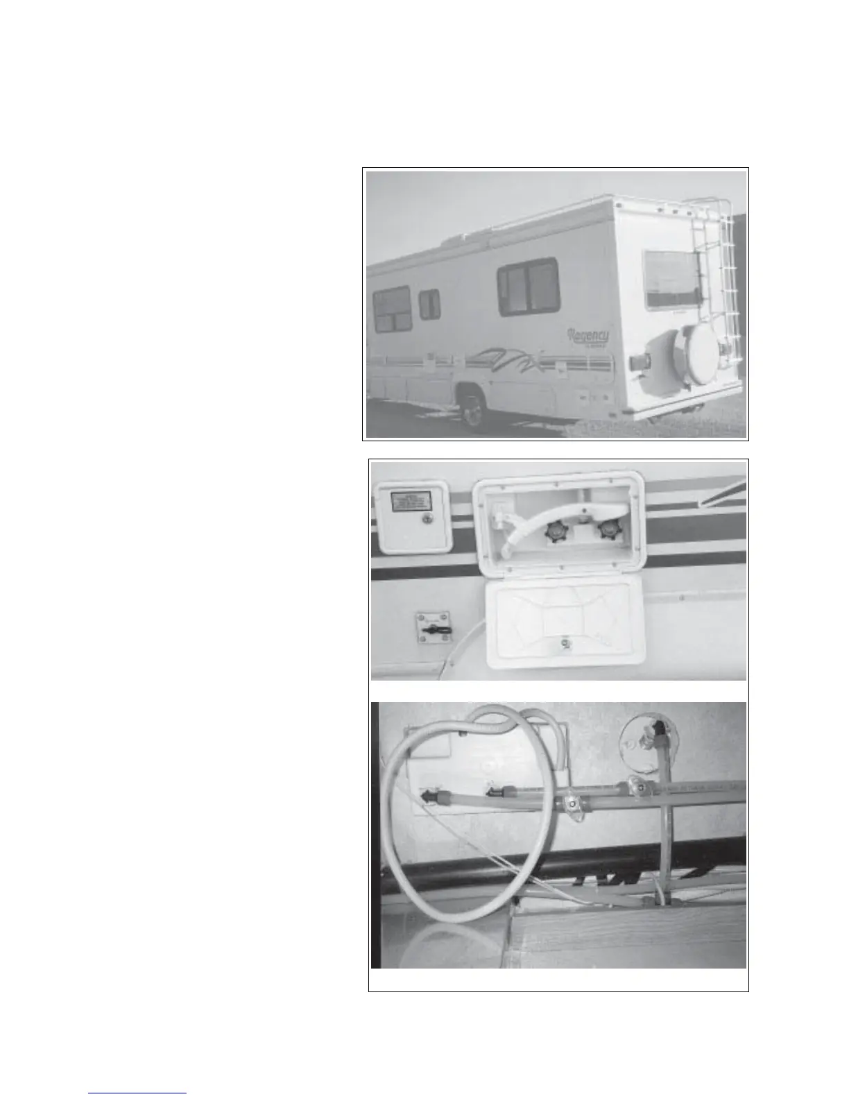 The water system is accessed on the driver's side of the motorhome. Always park this side next to the