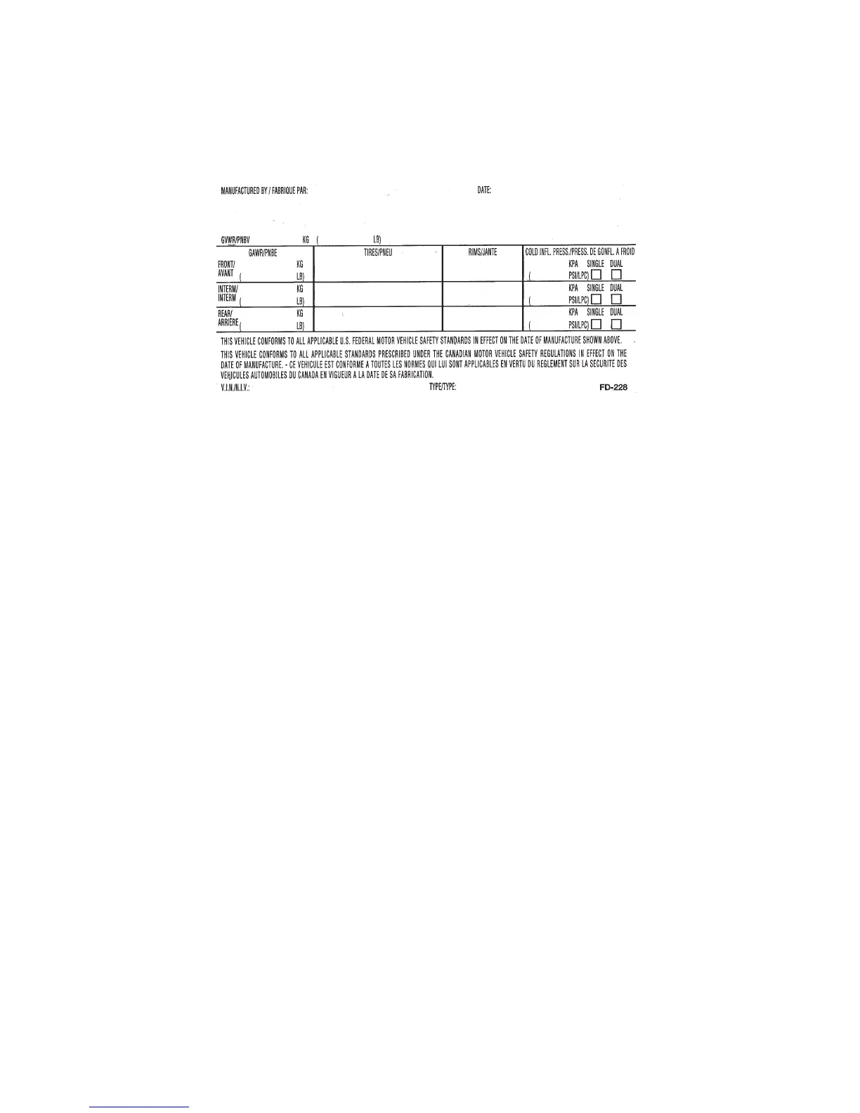 This label contains vehicle identification and other important reference information. The vehicle certification