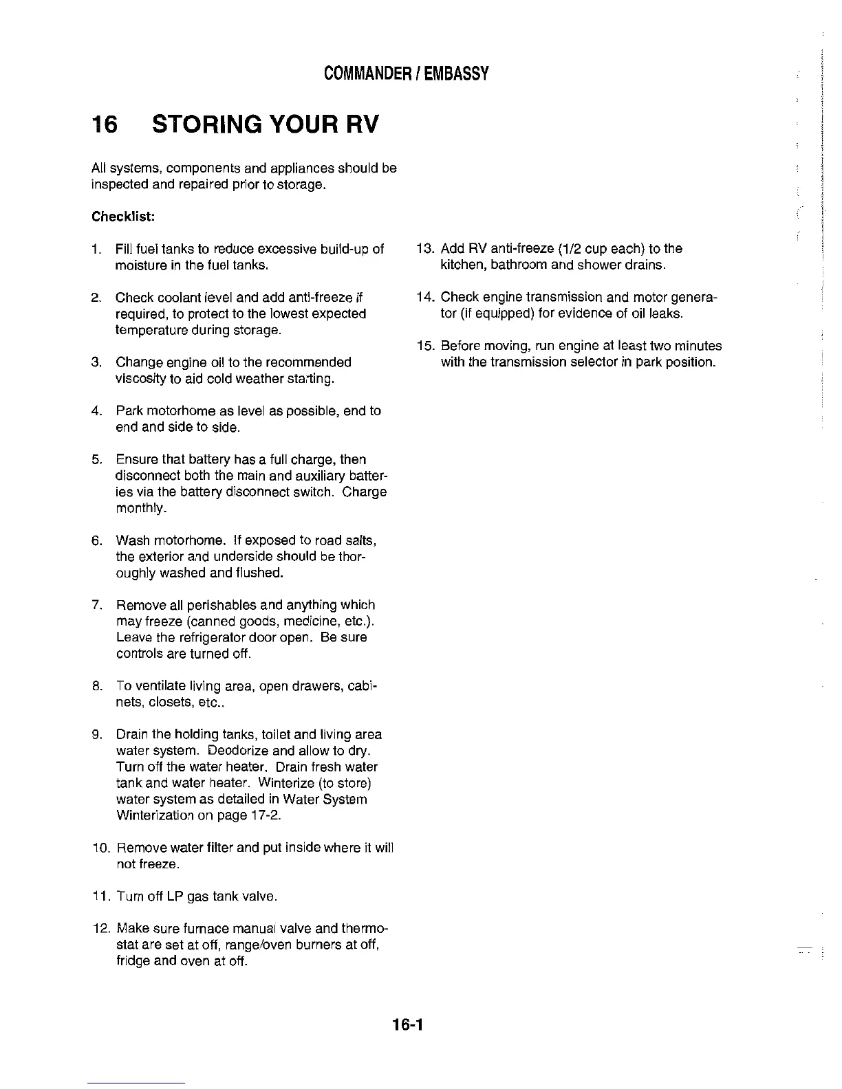 Triple E 1999 Commander Series - Storing Your RV; Checklist
