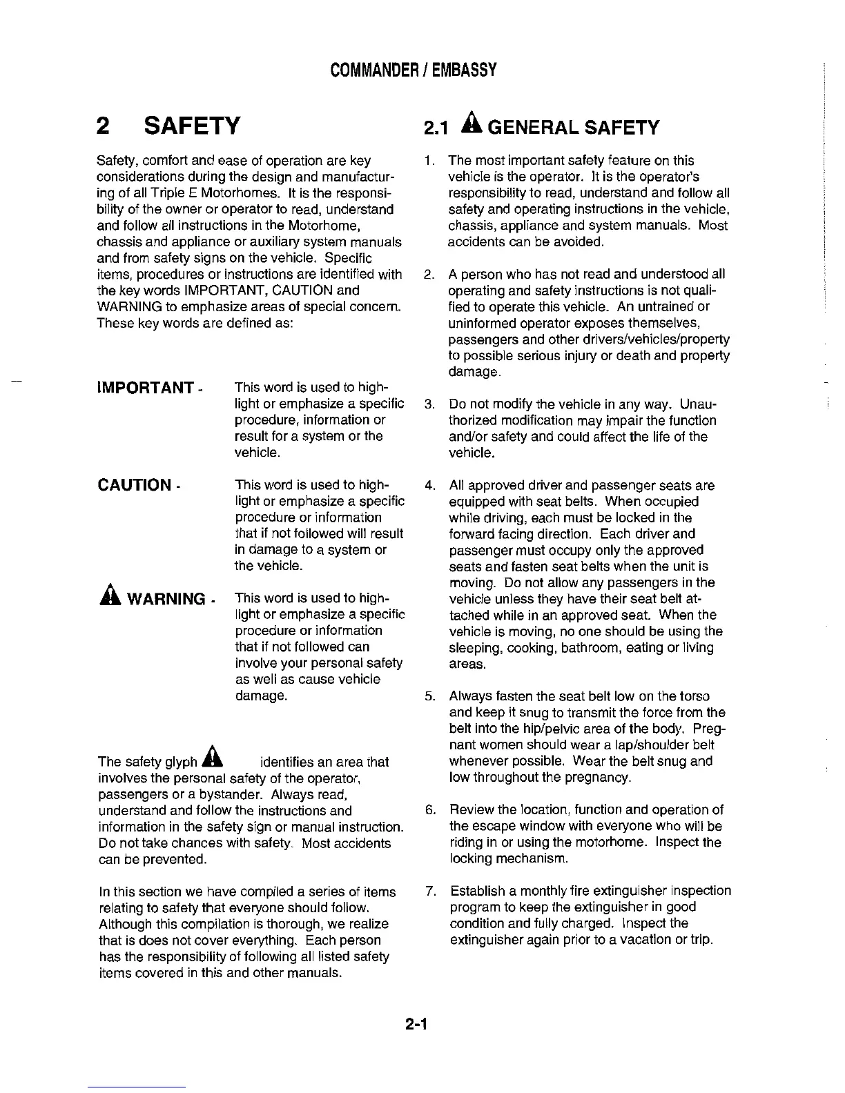 Triple E 1999 Commander Series - Safety; General Safety