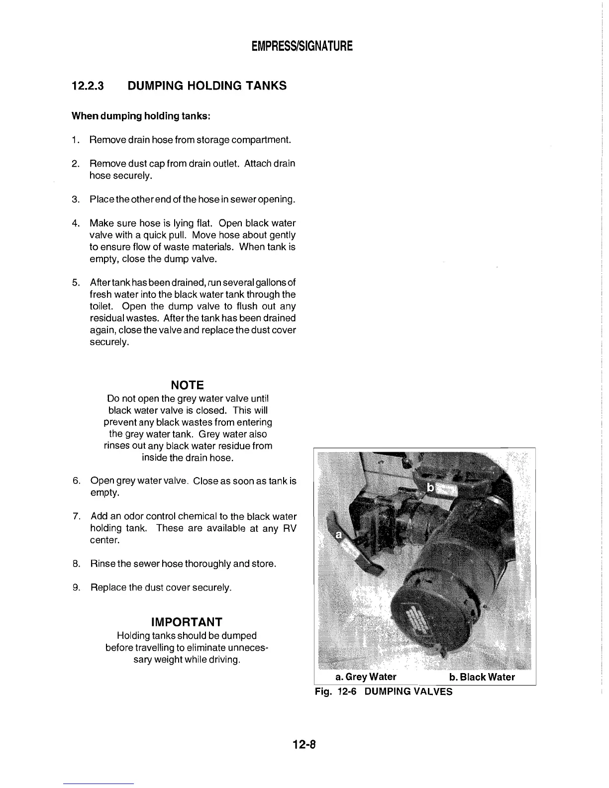 Triple E 2001 Empress series - Dumping Holding Tanks; Dumping Valves View