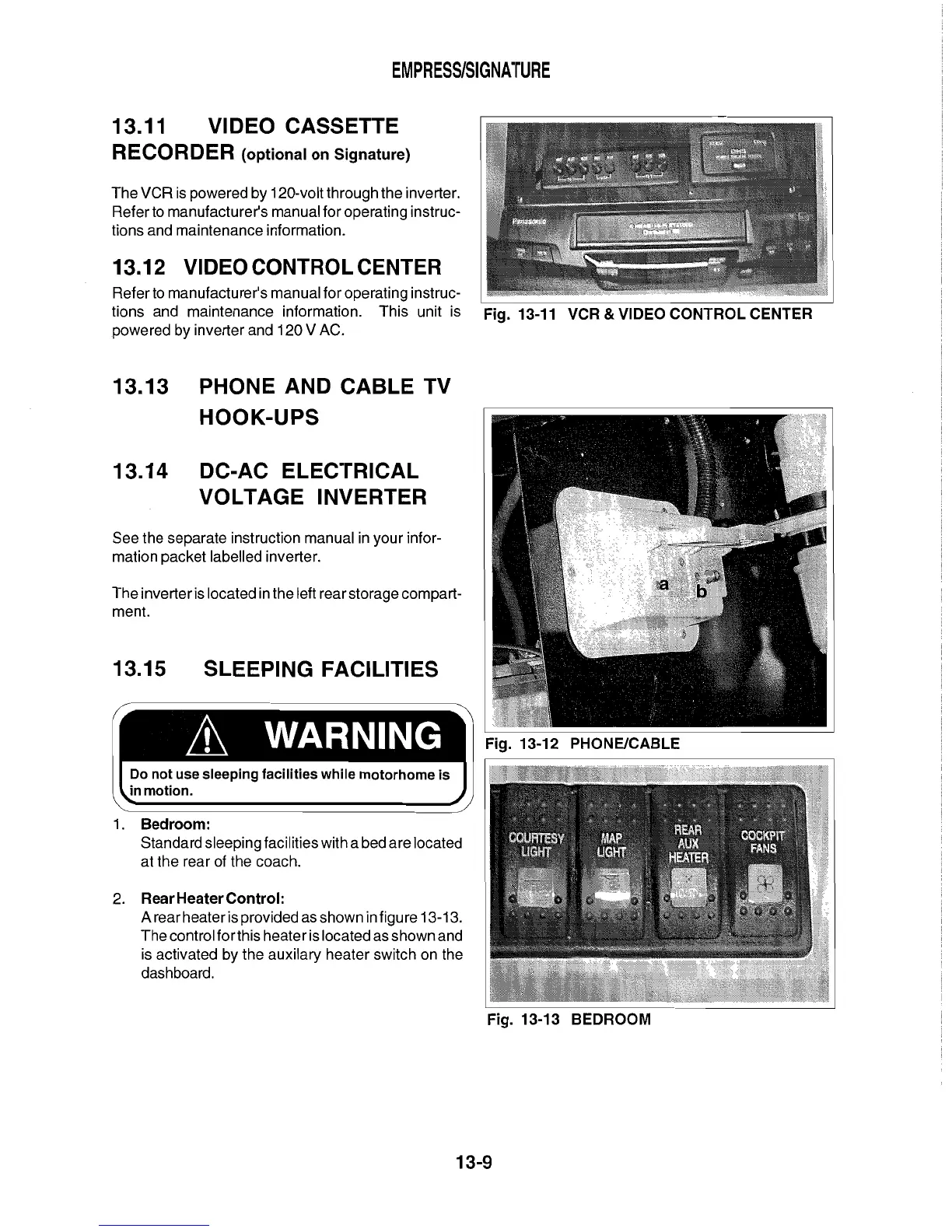 Triple E 2001 Empress series - Video Cassette Recorder; Video Control Center; DC-AC Electrical Voltage Inverter; Sleeping Facilities