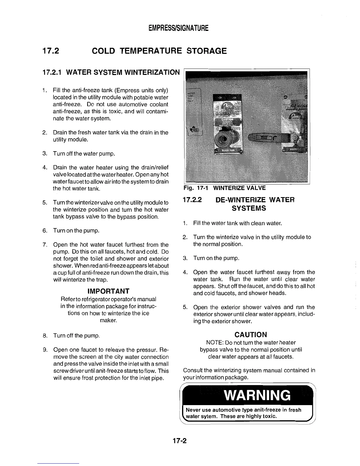Triple E 2001 Empress series - Cold Temperature Storage; Water System Winterization; De-Winterize Water Systems