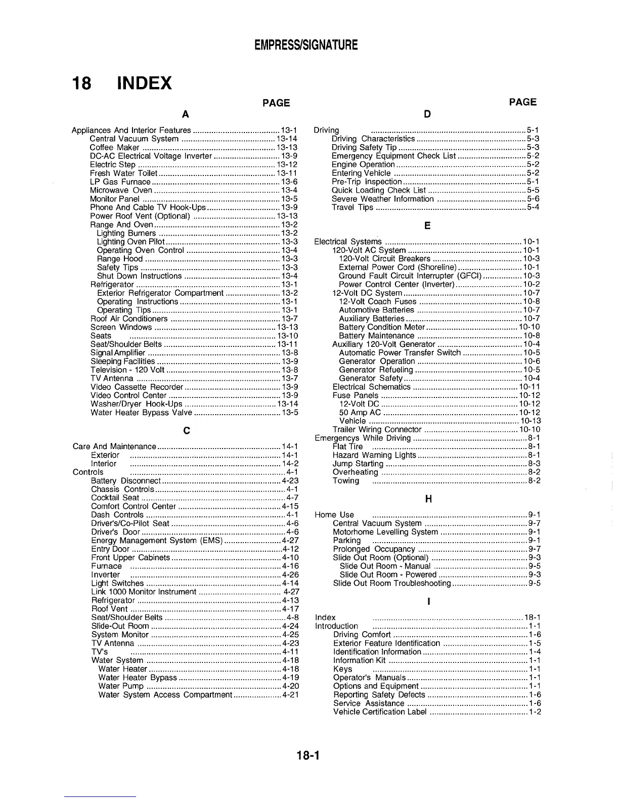 Triple E 2001 Empress series - Index