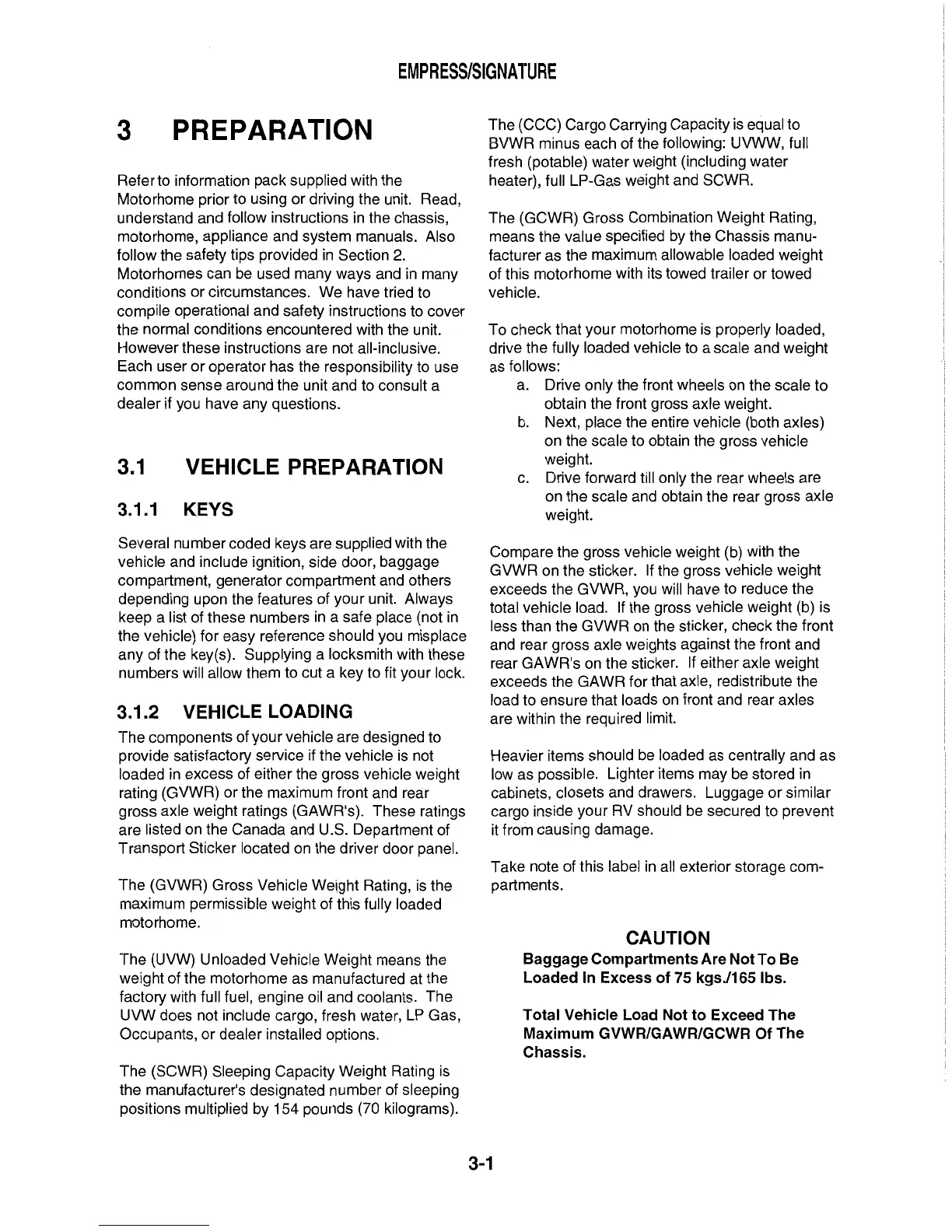 Triple E 2001 Empress series - Praparation; Keys; Vehicle Loading