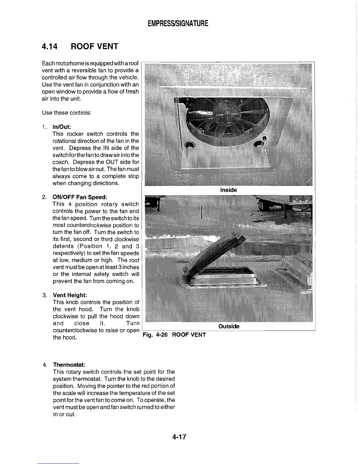 Triple E 2001 Empress series - Roof Vent; On;Off Fan Speed; Vent Height; Thermostat