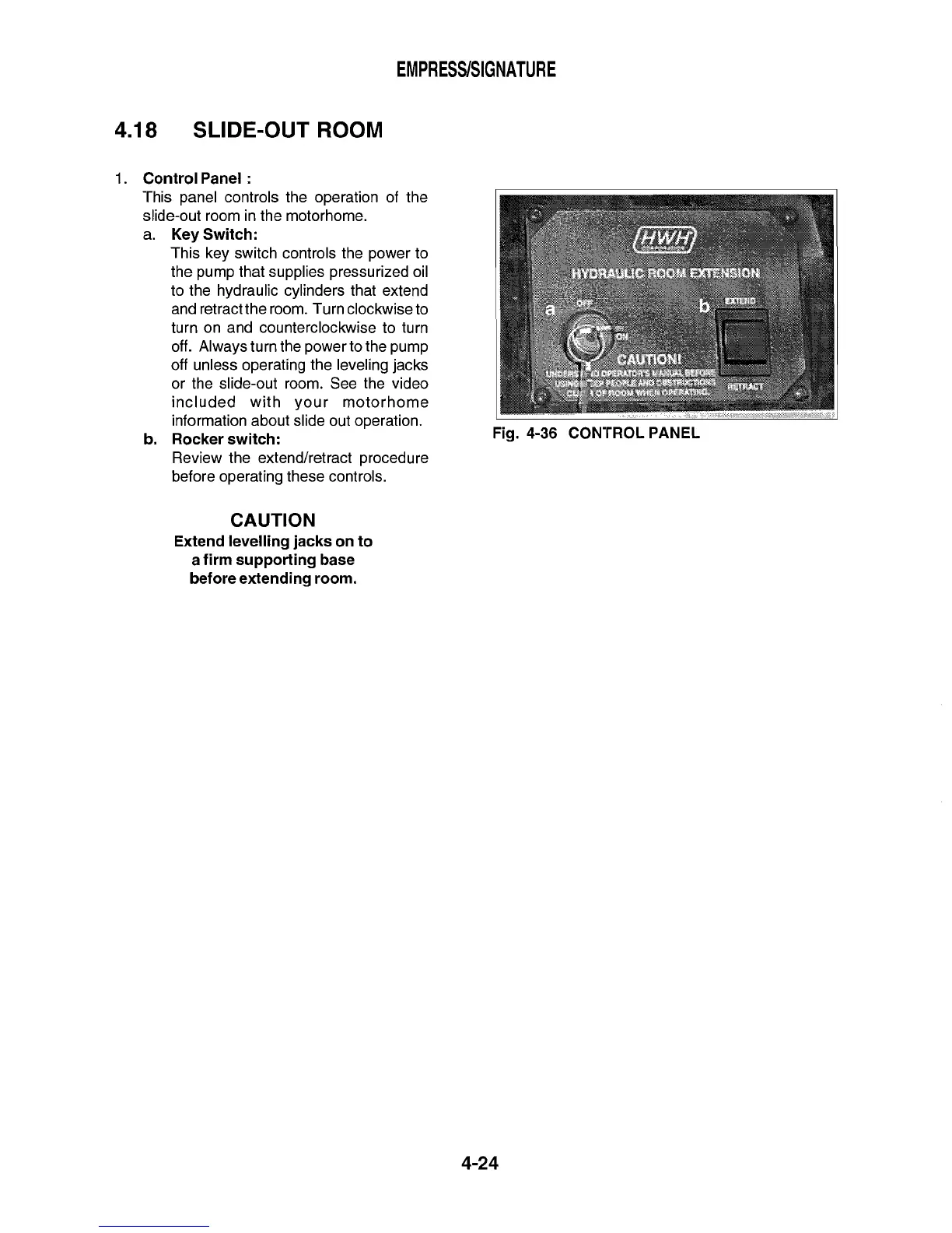 Triple E 2001 Empress series - Slide-Out Room; Control Panel (Room)