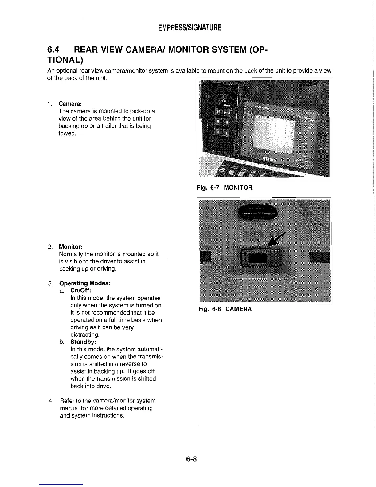 Triple E 2001 Empress series - Rear View Camera;Monitor System