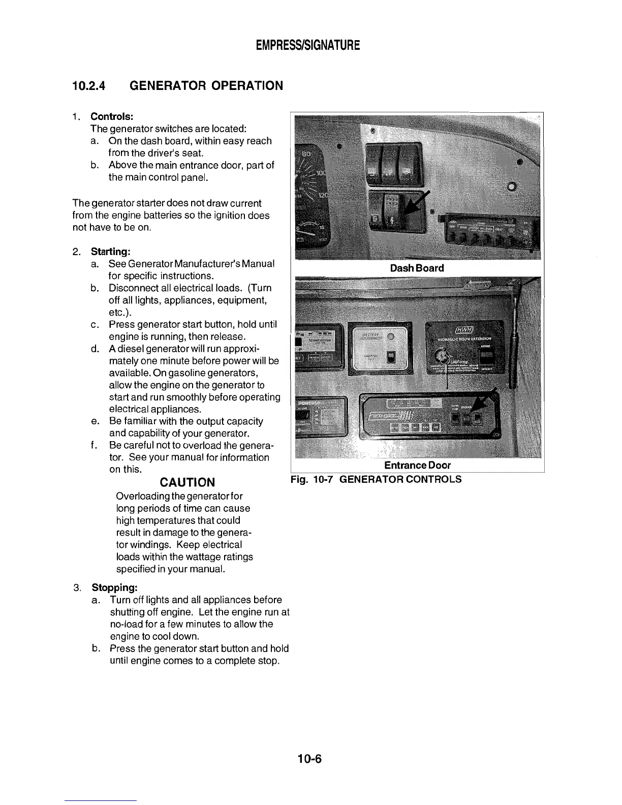 Triple E 2001 Empress series - Generator Operation