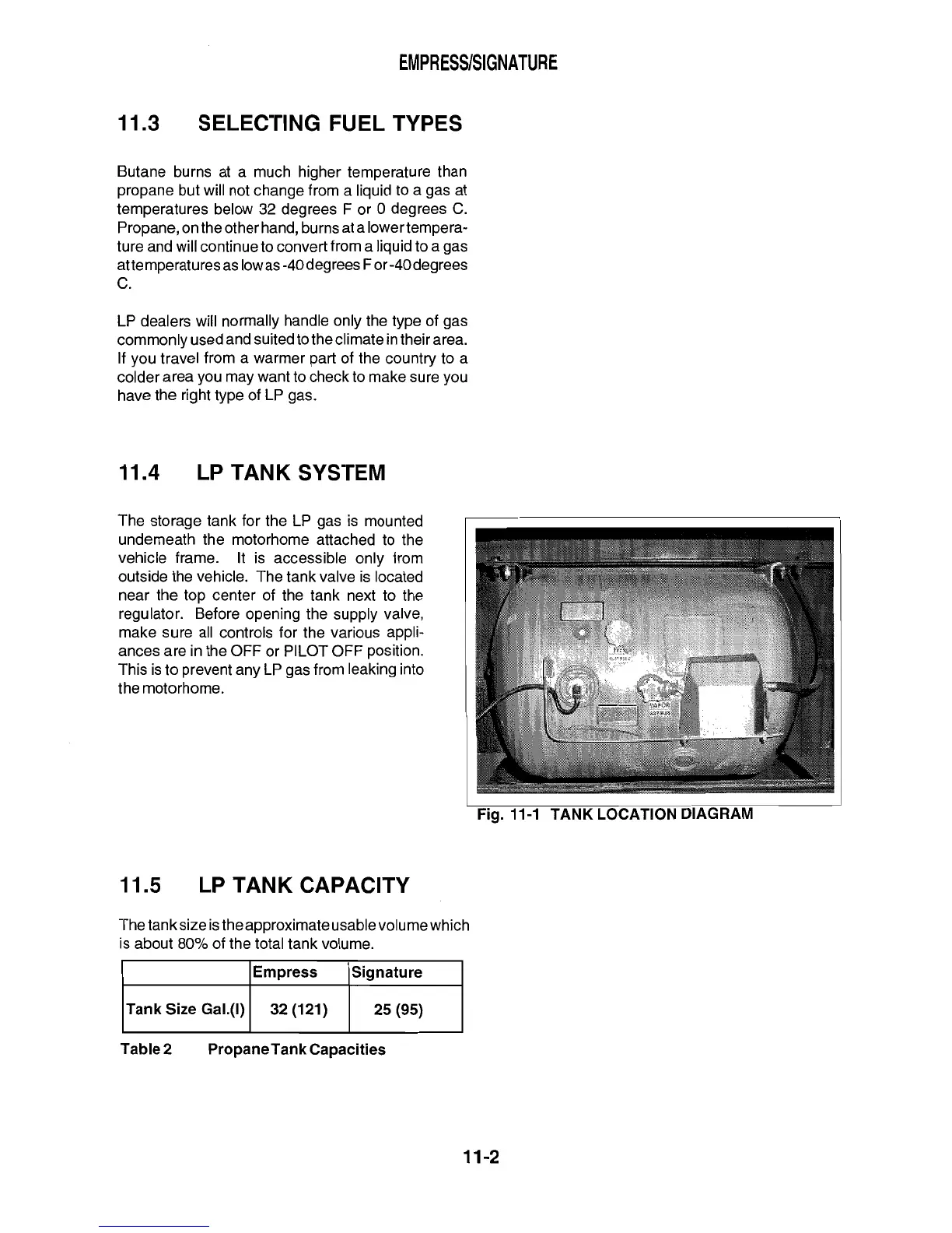Triple E 2001 Empress series - Selecting Fuel Types; LP Tank System; LP Tank Capacity