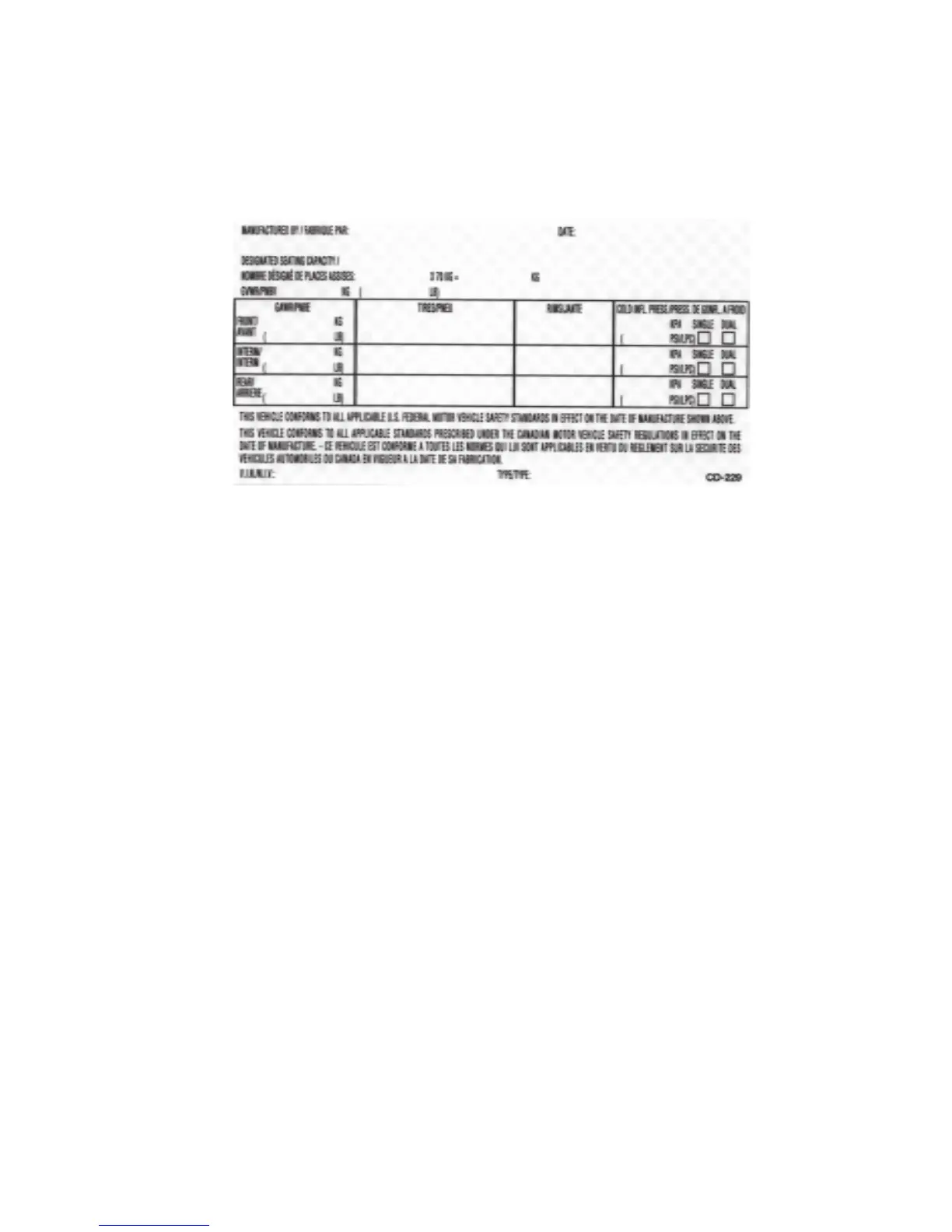 This label contains vehicle identifi cation and other important reference information. The vehicle certifi ca-