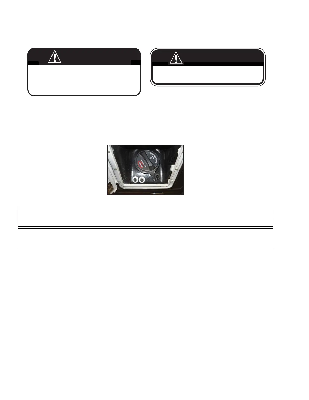 Do not overll the fuel tank. Fill only until the automatic shut-o valve cuts out. This allows for expansion of the fuel