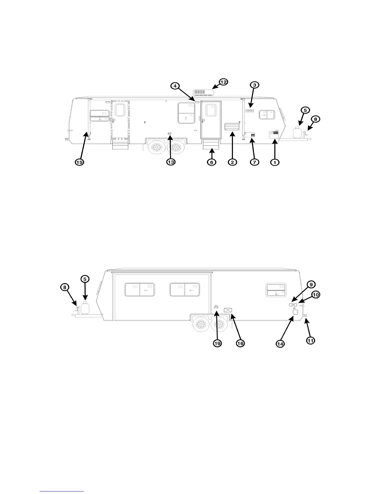 Fig. 1-6 EXTERIOR IDENTIFICATION - TRAVEL TRAILER ONLY (LEFT)