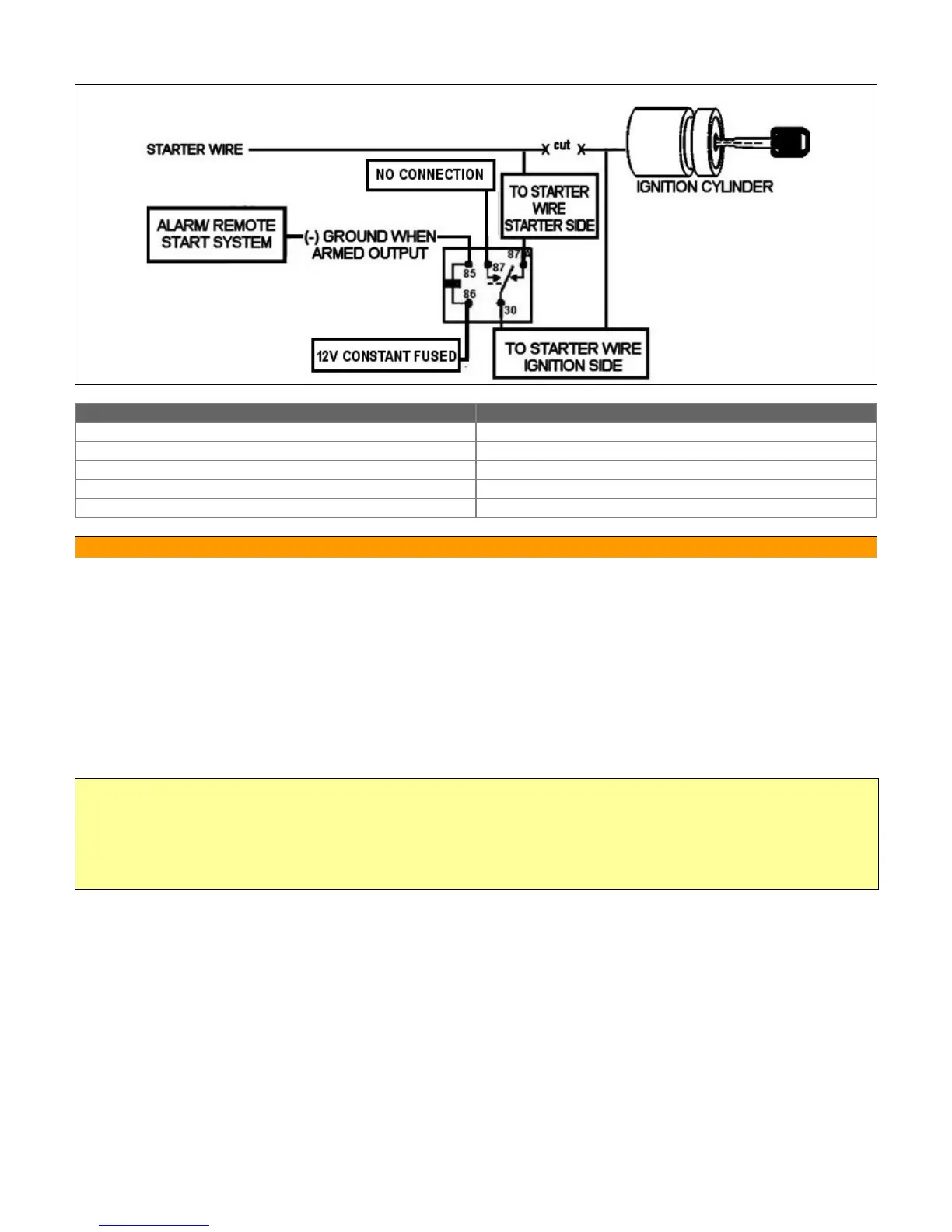 If the system does not come pre-wired for a starter disable, use a relay and wire as shown: