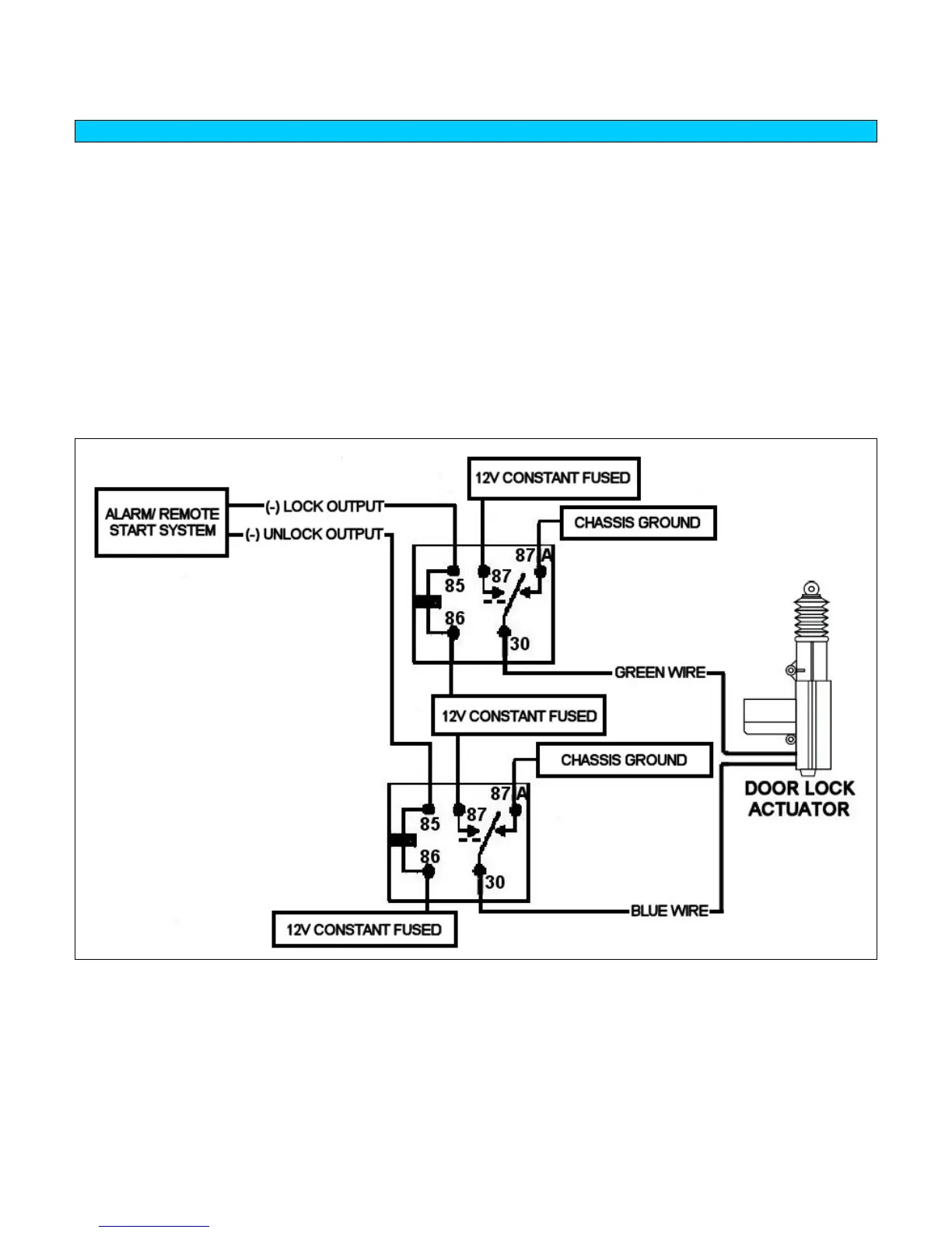 • This requires mounting the door lock actuator inside the door. The fuse used on 12V inputs should be 7.5A