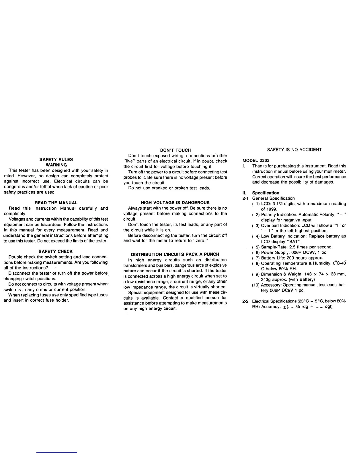 Triplett 2202 - Safety Rules and Precautions; General Safety Precautions; Manual and Pre-Use Checks; Product Overview and Specifications