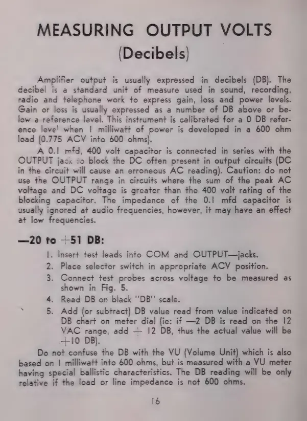 Triplett 630 - Measuring Output Volts (Decibels); Decibel Measurement Procedure