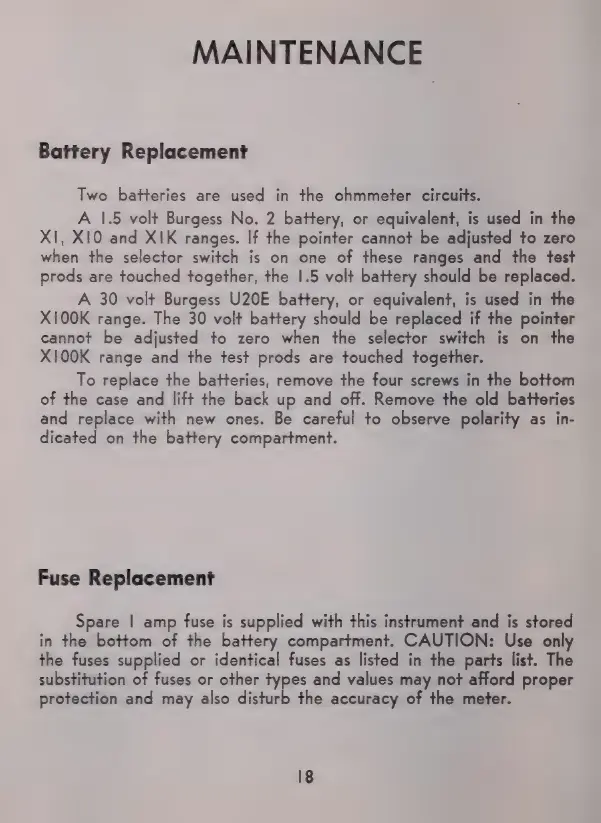 Triplett 630 - Maintenance and Care; Battery and Fuse Replacement