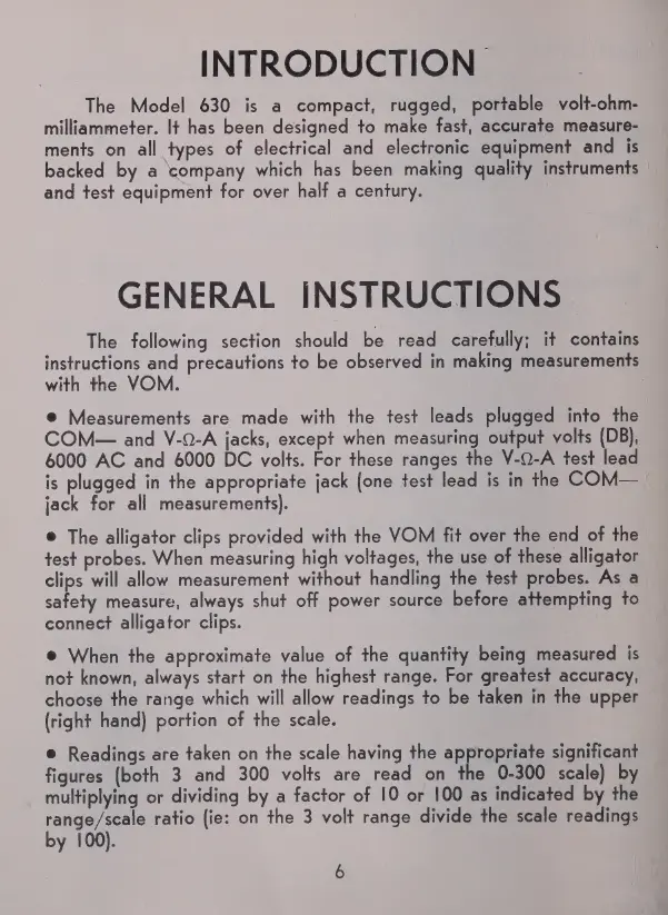 Triplett 630 - Introduction and General Instructions; General Operating Instructions