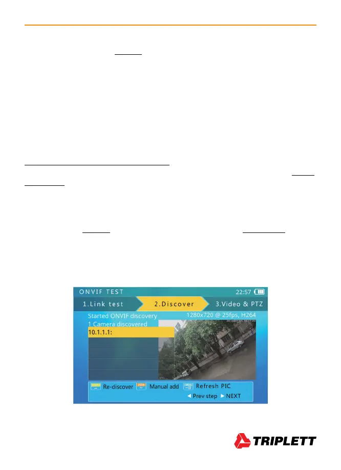Once you have highlighted the camera you want to test on the Discover screen, press the RIGHT