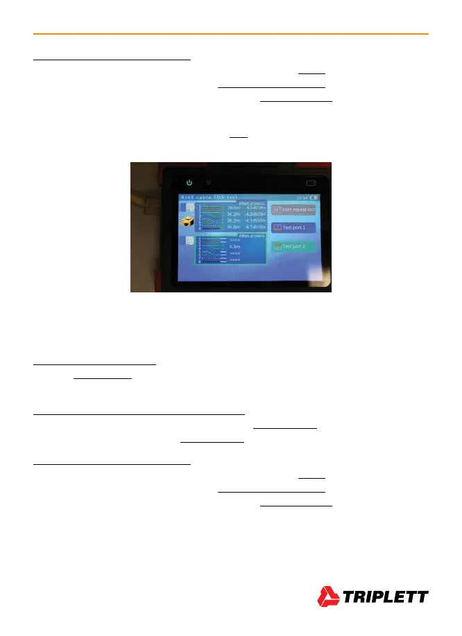 “RJ45 Cable TDR Test” option is highlighted, press the Right Arrow Key to select the test. (See