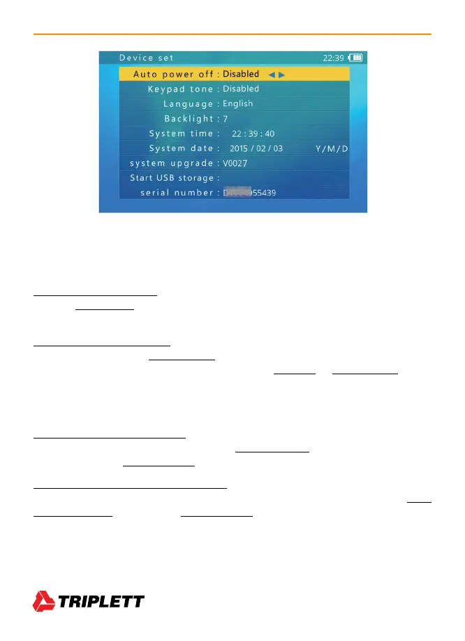 highlighted, press the Right Arrow Key to access the Device Settings screen.