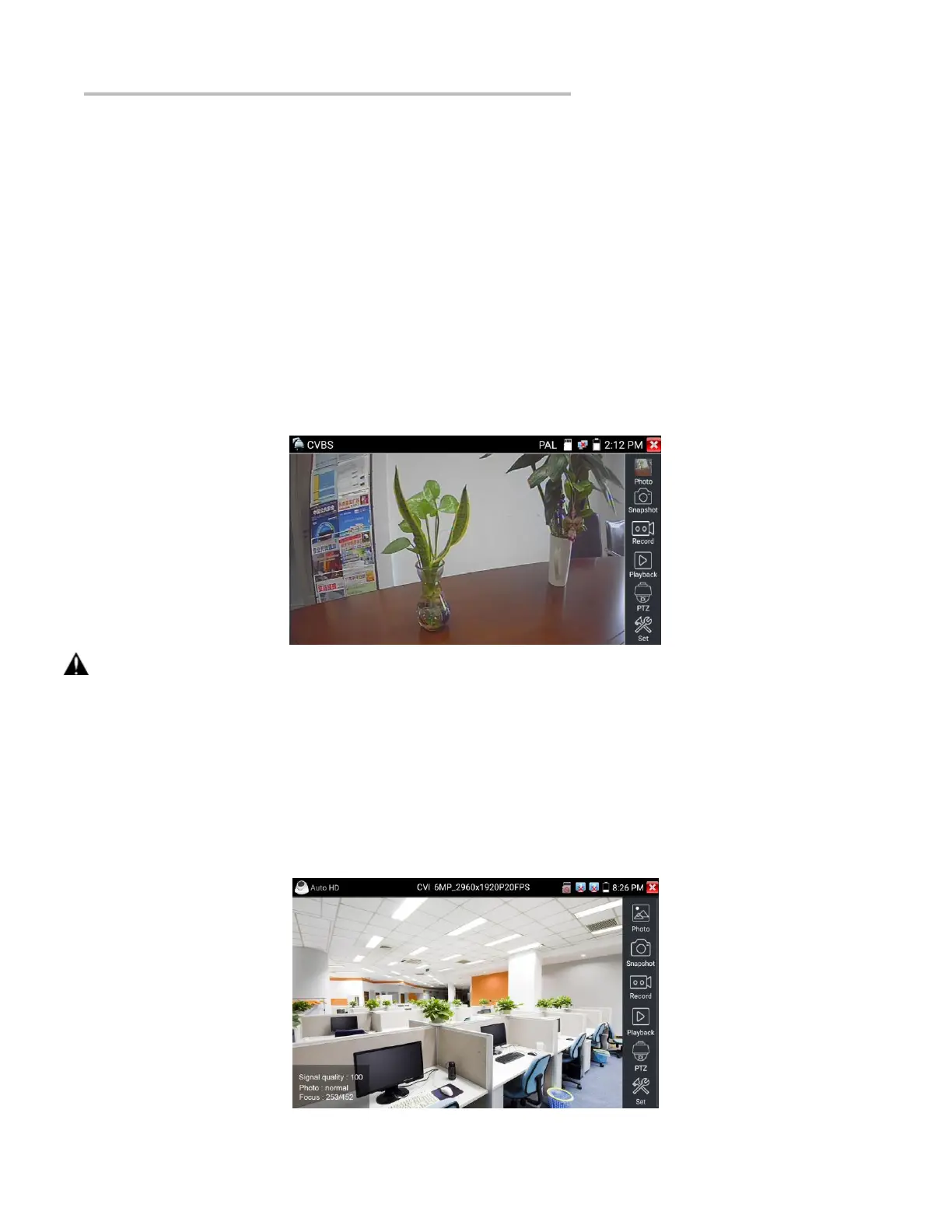 AHD cameras. Select relative function on the right toolbar to operate, functions including “Photos”, “Snapshot”, “Record”, “Playback”,