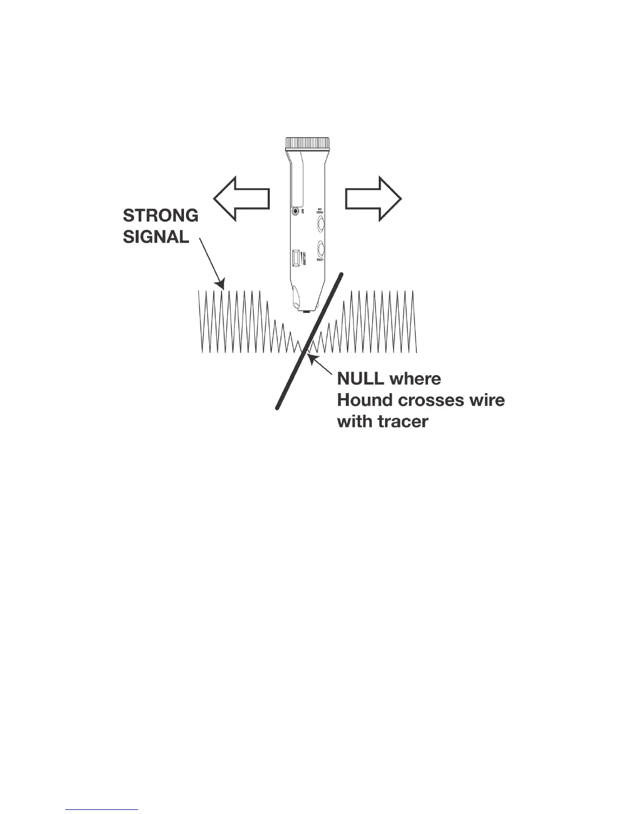 strong signal will be picked up on either side of the target wire, and a ‘null’ (dead spot) will appear right