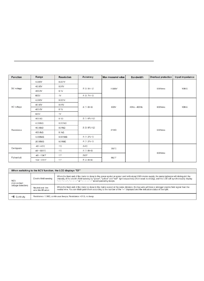 Triplett MM200 - Specifications; Measurement Specifications; Specialized Function Specs