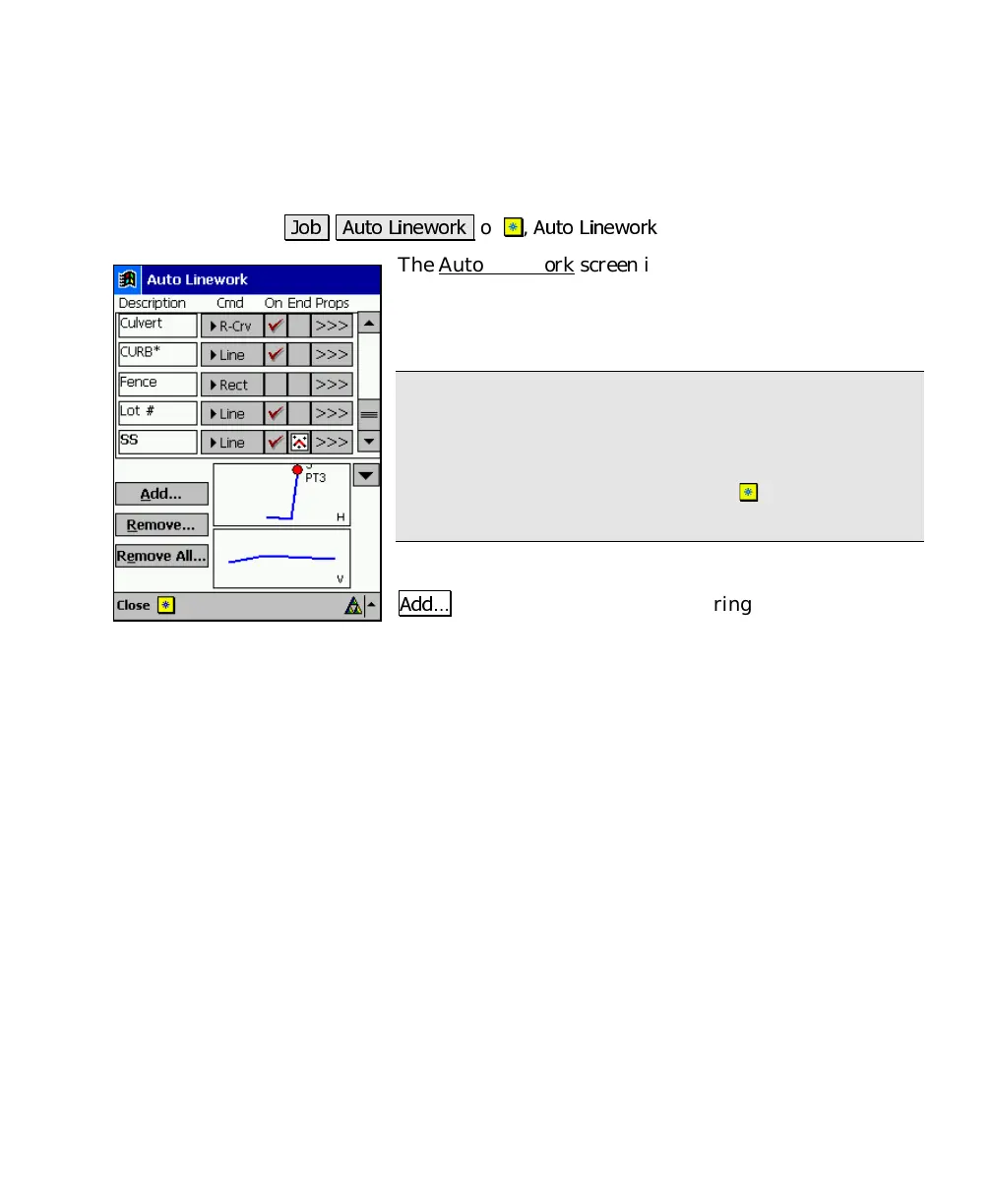 The Auto Linework screen is used to set up custom