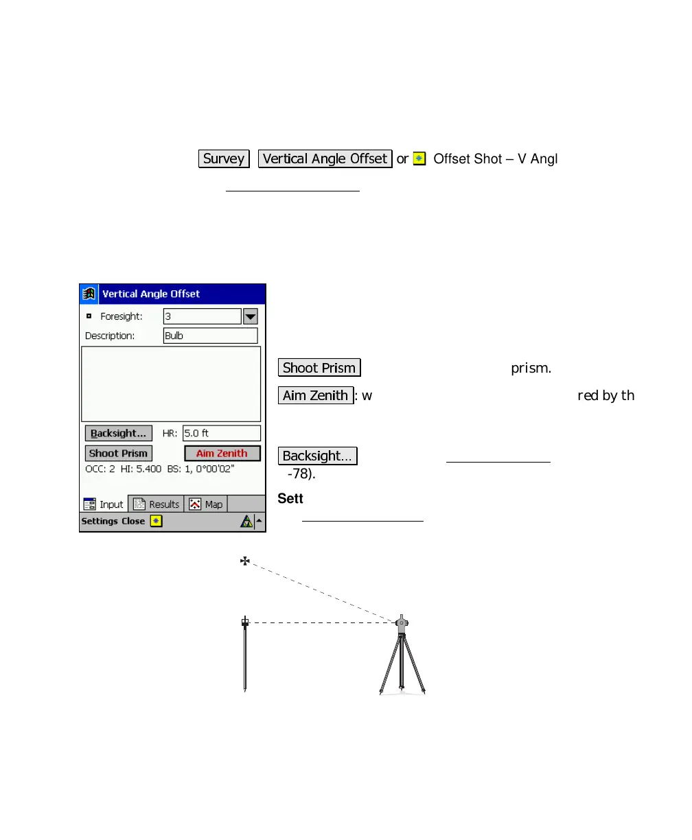 The Vertical Angle Offset screen allows you to compute and store the