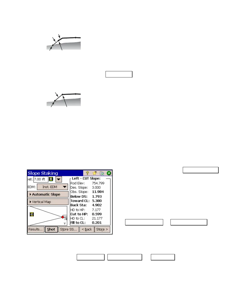 cut slope or fill slope by tapping the button