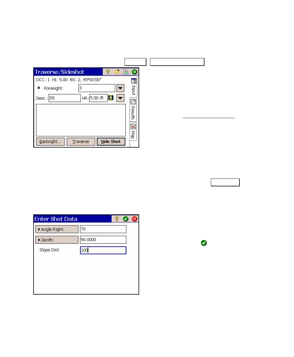 5. Access the Survey , Traverse / Sideshot screen and fill in the