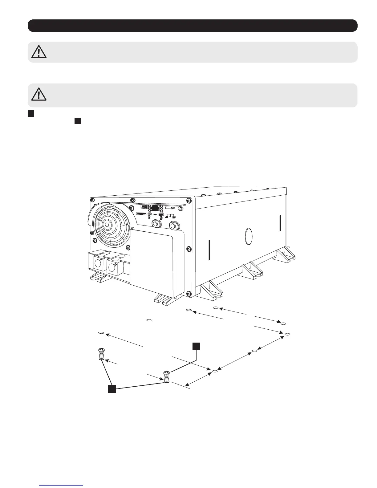 d’autres vis de 6 mm (¼”) (non fournies) entre les pieds moulés de l’arrière et des côtés du boîtier de l’Onduleur/Chargeur*. Les pieds arrière se prolongent