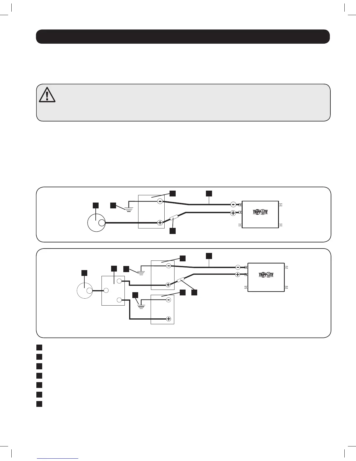 supérieur au calibre minimal de fusible CC indiqué sur la plaque signalétique de l’onduleur/chargeur. Voir les schémas ci-