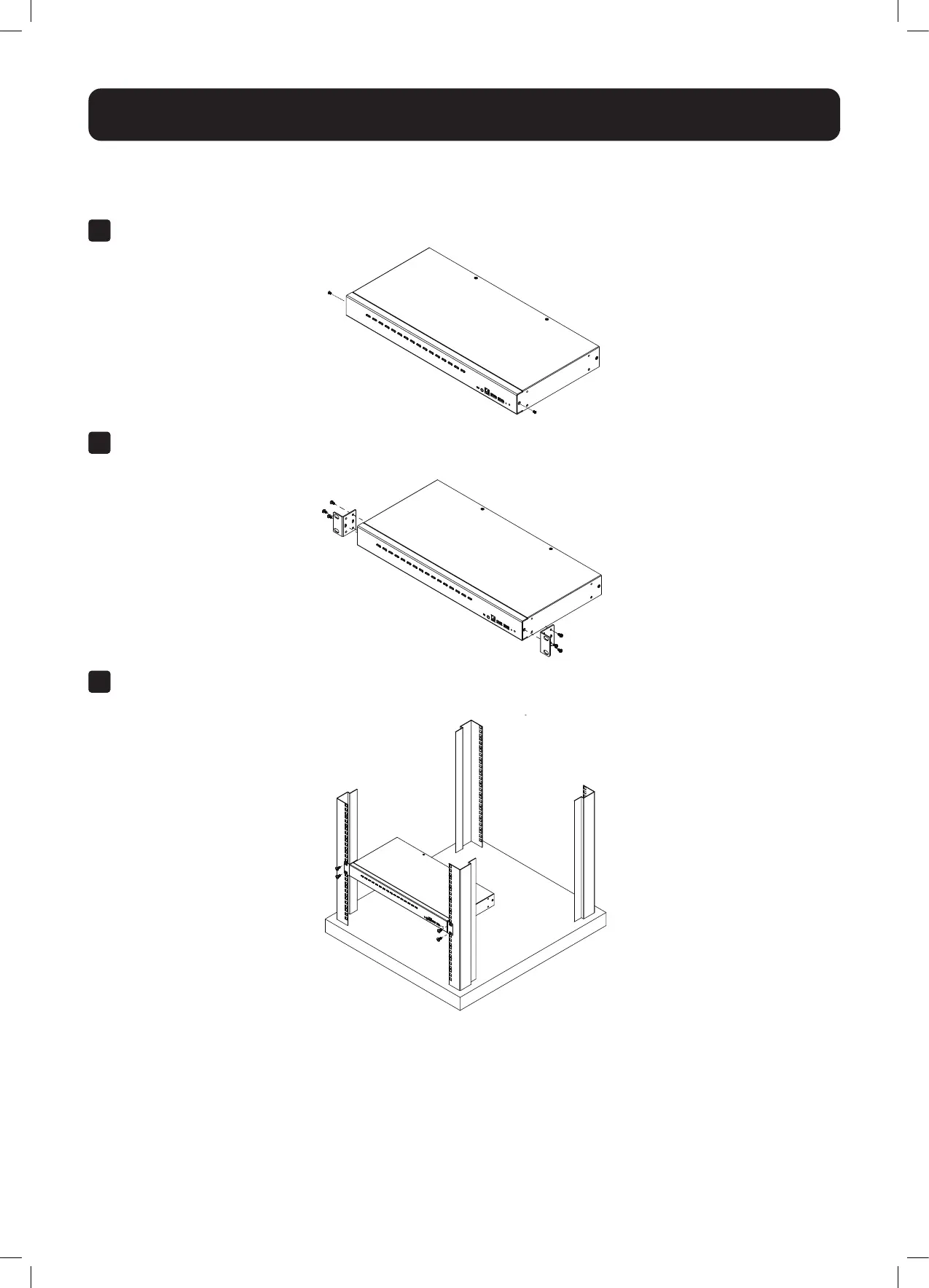 Прикрепите кронштейны для стоечного монтажа по бокам вблизи передней панели устройства при помощи винтов M3 x 6 с шестигранной головкой и