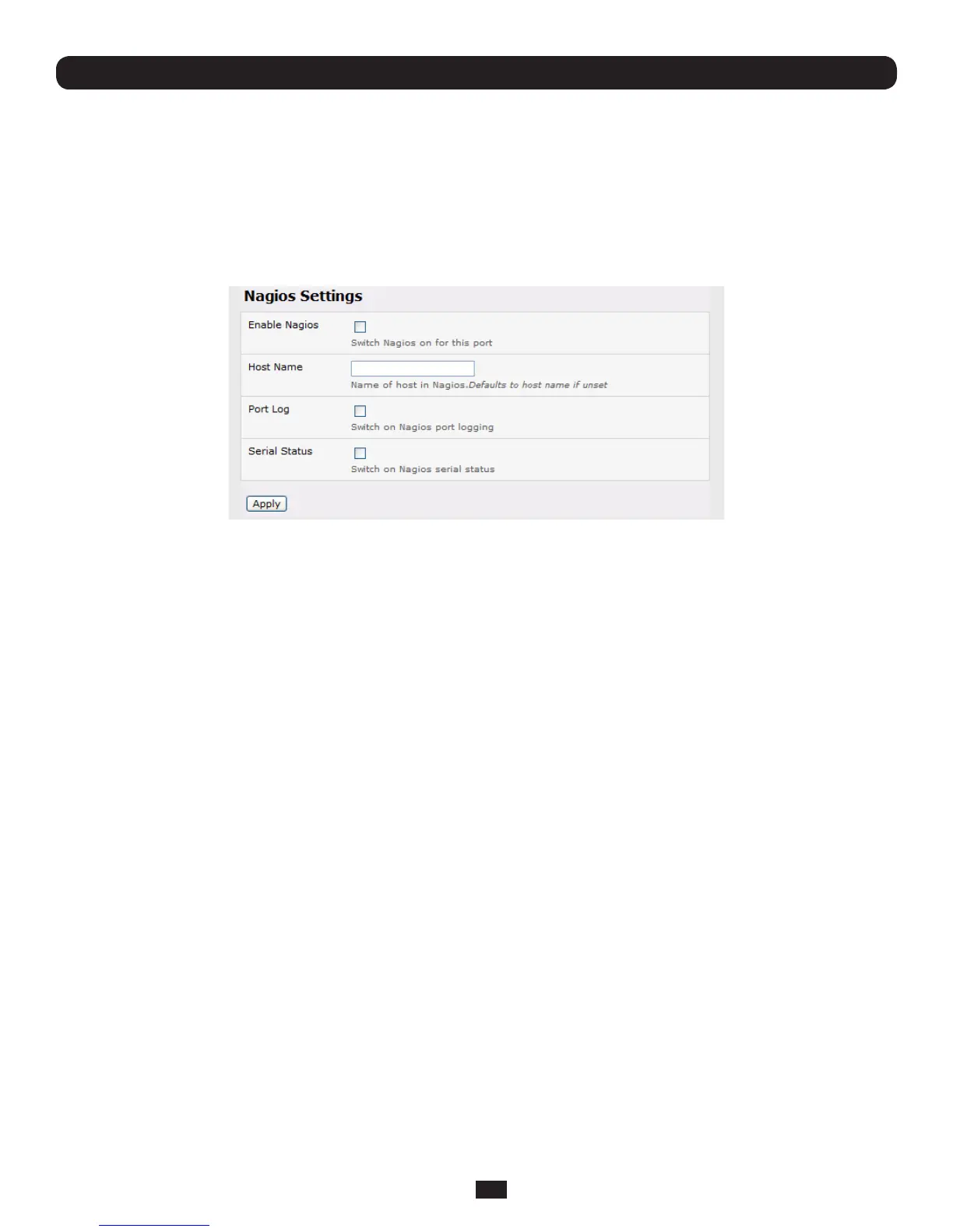TheindividualSerialPortsconnectedtotheConsoleServertobemonitoredmustbeconguredforNagioschecks.Referto