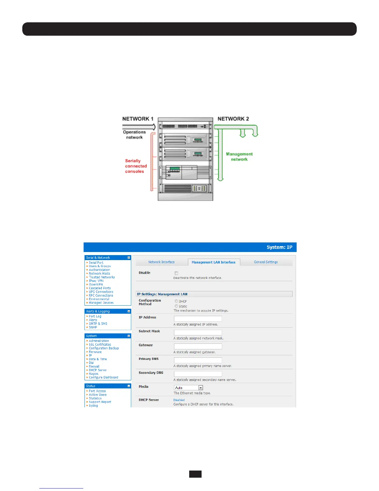 • SelecttheManagement LAN Interface page on the System: IP menu and uncheck Disable
