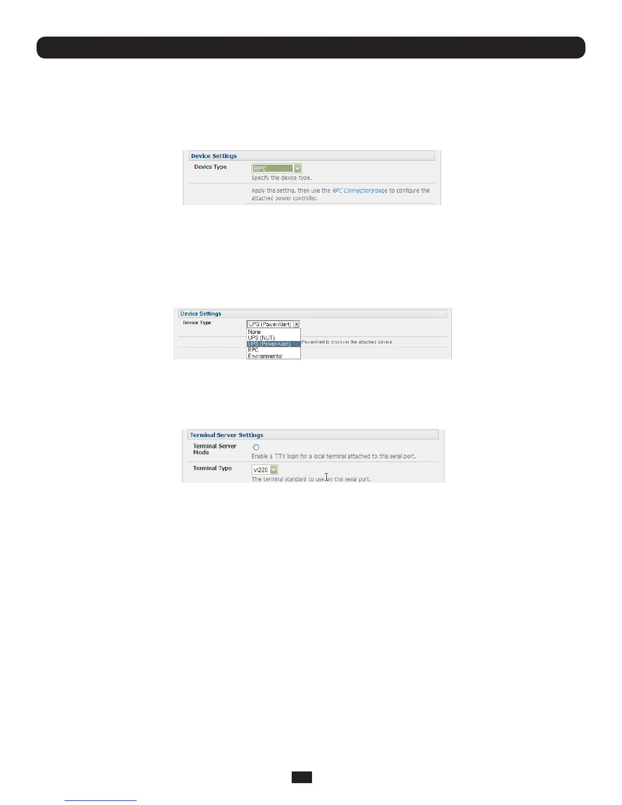 • Proceedtotheappropriatedevicecongurationpage(Serial & Network: UPS Connections, RPC Connection or