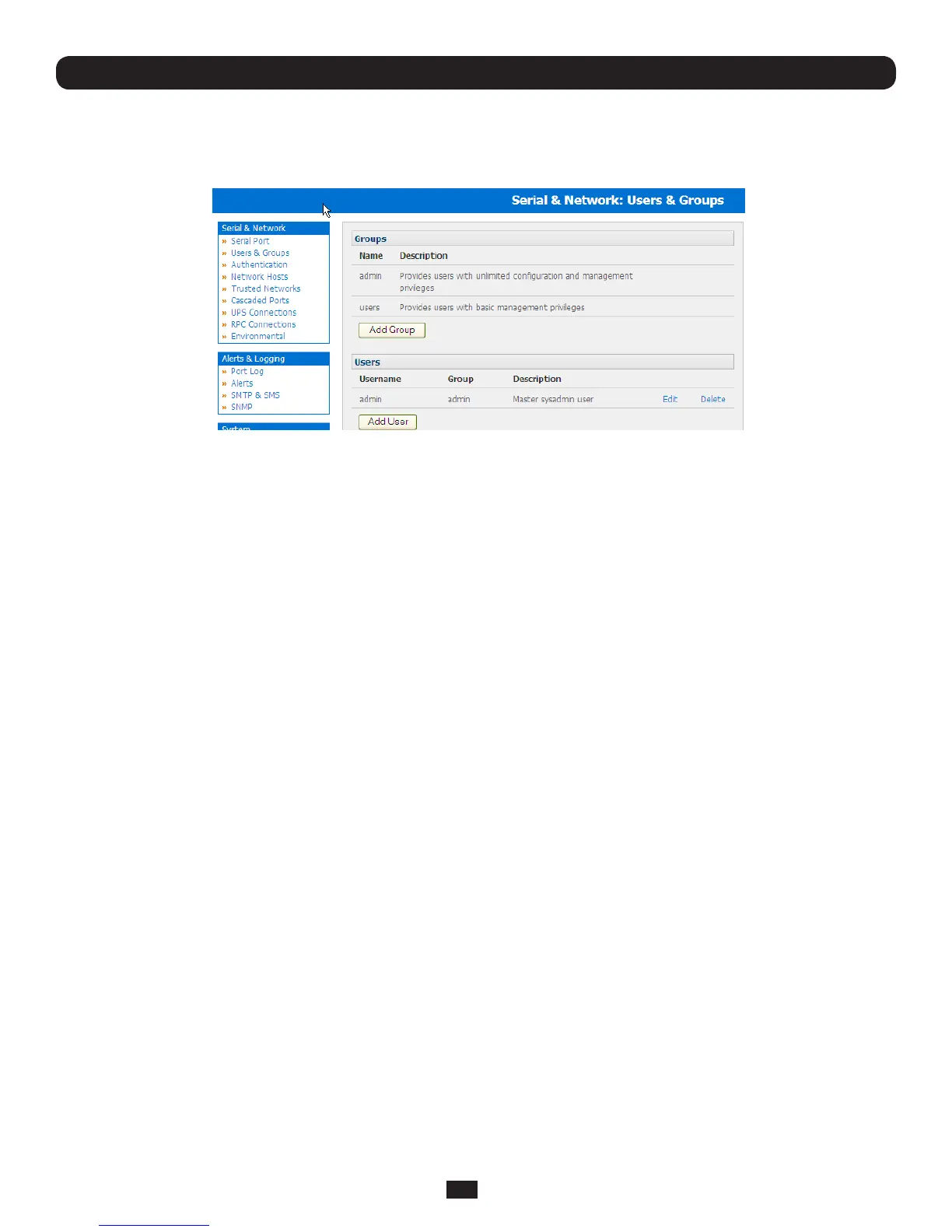 • SelectSerial & Network: Users & GroupstodisplaytheconguredGroupsandUsers