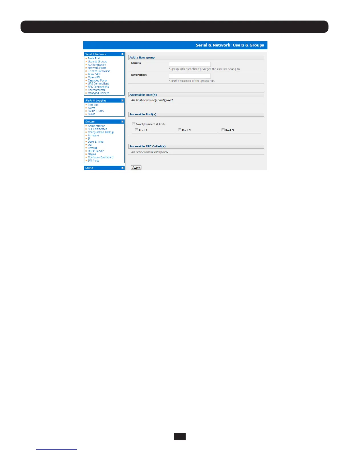 • ClickApply.ThenewuserwillnowbeabletoaccesstheNetworkDevices,PortsandRPCOutletsyounominatedas