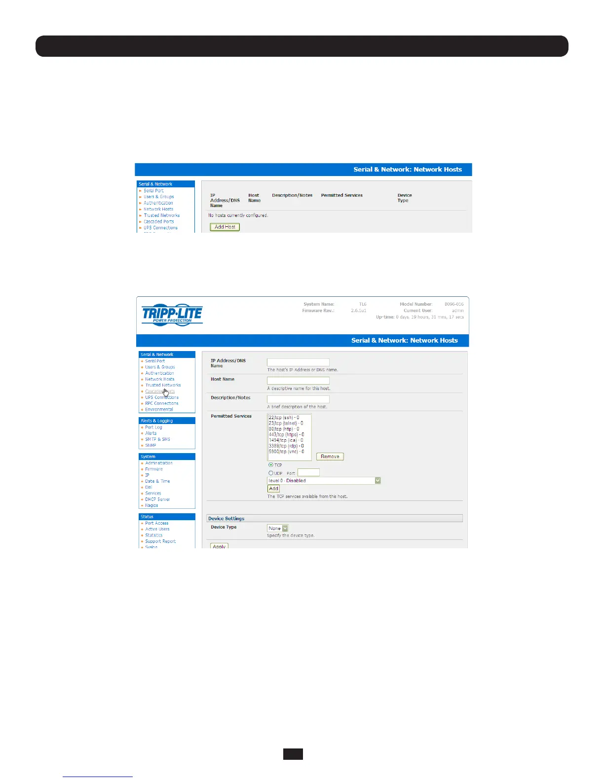 • SelectingSerial & Network: Network Hosts presents all the network connected Hosts that have been enabled for