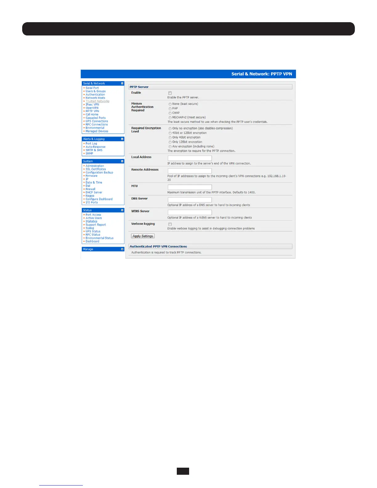• EnterthedesiredvalueoftheMaximumTransmissionUnit(MTU)forthePPTPinterfacesintotheMTUeld(defaultsto1400)