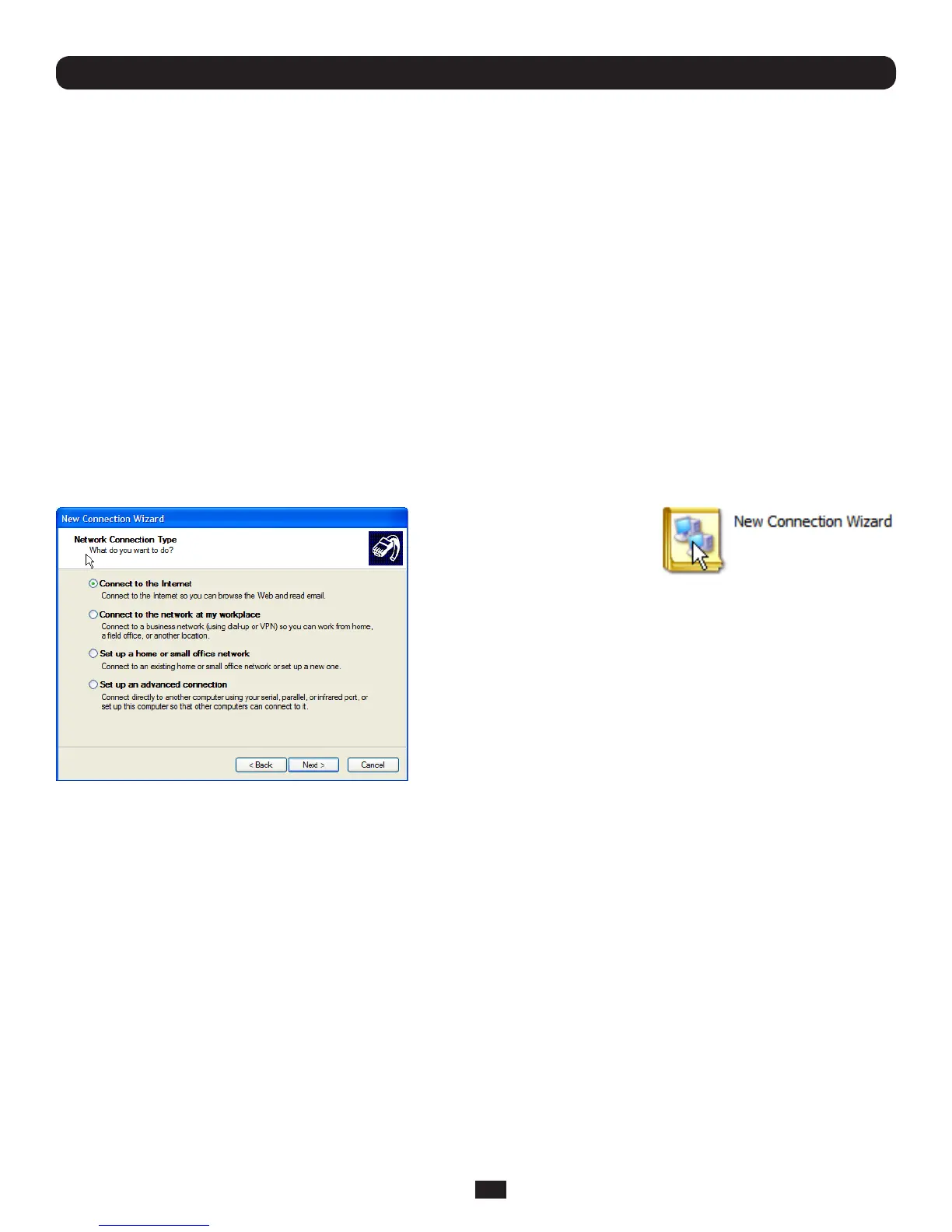 • OpenNetwork Connections in Control Panel and click the New Connection Wizard