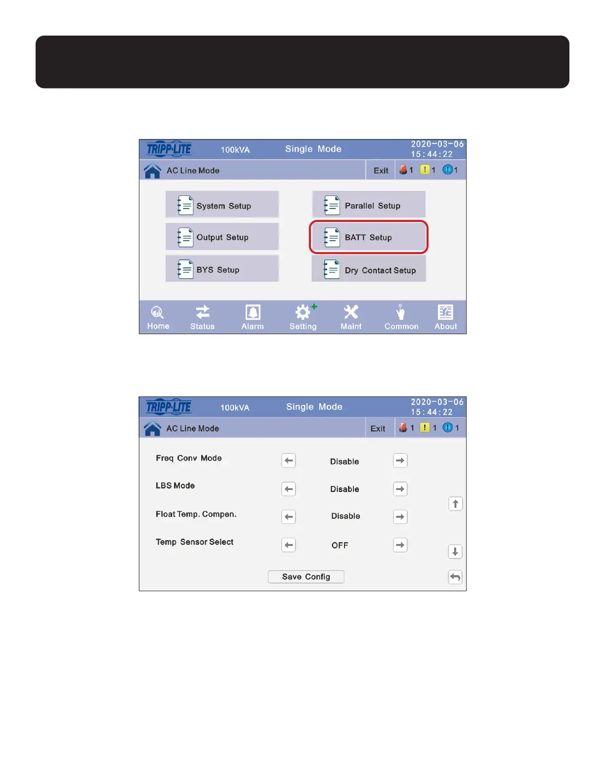 Haga click en BATT Setup [Configuración de Batería]